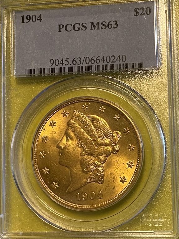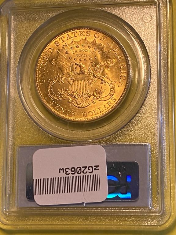 Mint State 63 graded by PCGS this is a $20 gold Liberty coin.