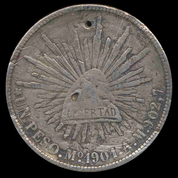 Scarce early piece; bent & holed; 0.7857 ounces silver