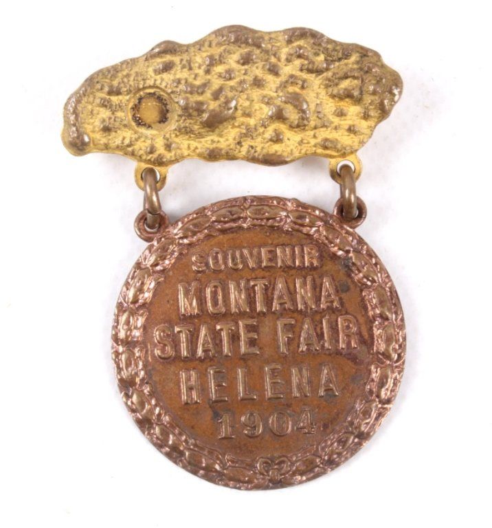This is a true antique collectible from Montana. This piece is a 1904 Badge from the Montana State Fair held in Helena. This souvenir appears to be in good condition and was made by The C.M Robbins Co. MakersAttleborg, Mass. This rare piece measures 1.5"x2"