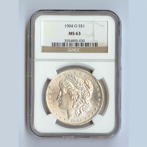 1904 Morgan Silver Dollar MS63 NGC Certified - N1904 Mint of our choice! Stock photo in use.