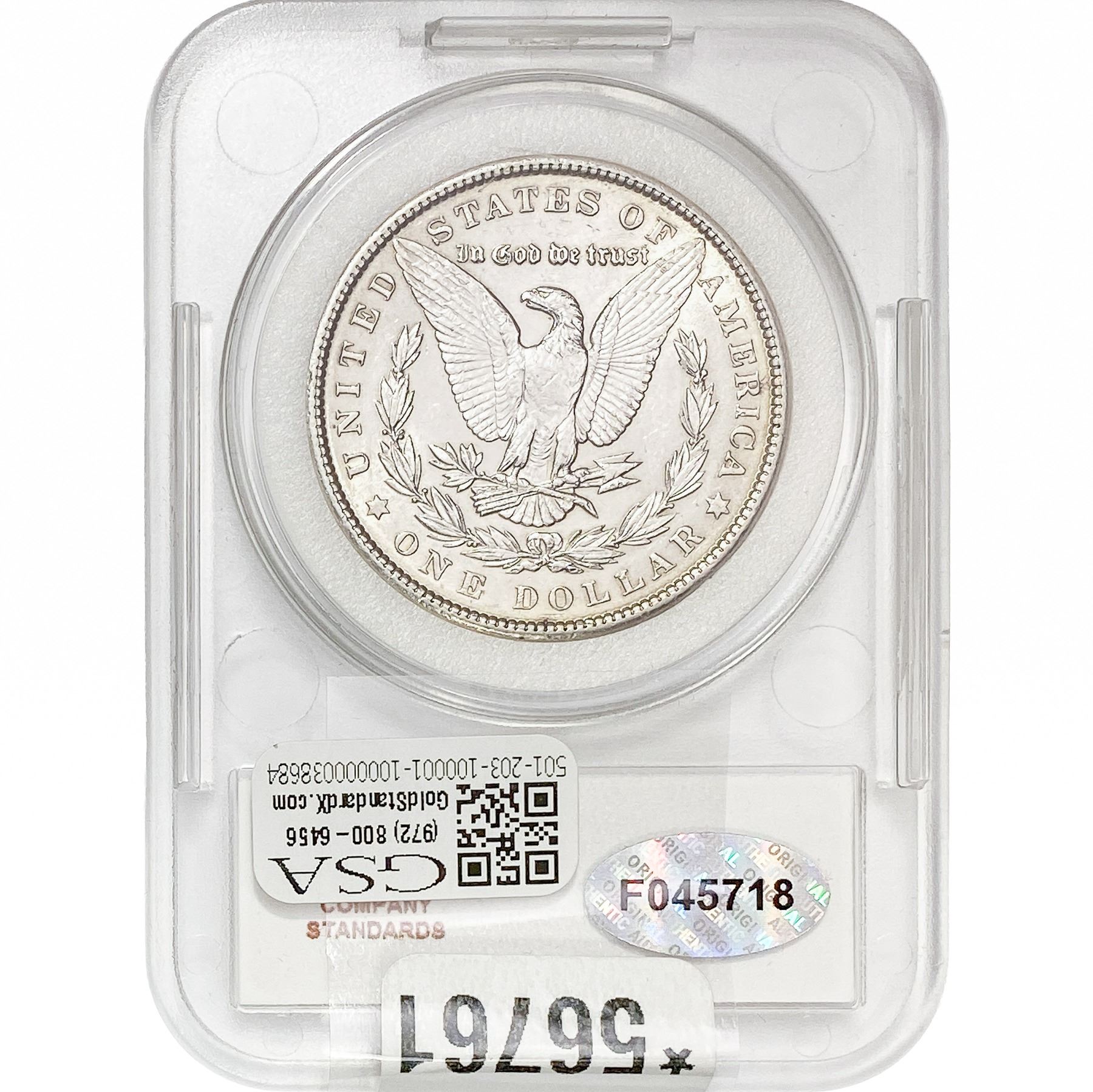 COINS AND CURRENCY LISTED IN GSA’S CATALOG AS GRADED AND ENCAPSULATED BY PCGS, NGC, ANACS, ICG, PCGS CURRENCY, PMG, PCGS BANKNOTE GRADING, CMC OR ANY OTHER THIRD-PARTY GRADING SERVICE ARE LIKEWISE SOLD “AS-IS” EXCEPT AS EXPRESSLY SET FORTH HEREIN. ALL THIRD-PARTY GRADING SERVICE GUARANTEES, INCLUDING AUTHENTICITY, ARE THE SOLE RESPONSIBILITY OF THE THIRD-PARTY GRADING SERVICE AND NOT WARRANTIES OR GUARANTEES OF GSA. BIDDERS SHOULD CONTACT THESE THIRD-PARTY GRADING SERVICES DIRECTLY WITH RESPECT TO ANY CLAIMS OR QUESTIONS THEY MAY HAVE CONCERNING THEIR GUARANTEES AND WARRANTIES. BIDDERS ACKNOWLEDGE AND AGREE THAT AUCTIONEER IS NOT BOUND BY OR LIABLE FOR ANY OPINION OR CERTIFICATION BY ANY THIRD-PARTY GRADING SERVICE. REMOVAL OF A PRODUCT FROM ITS PROTECTIVE CASING OR HOLDER OR ALTERATION OF ANY COIN HOLDER WAIVES ALL RIGHTS CONCERNING THE PRODUCT CONTAINED THEREIN.
