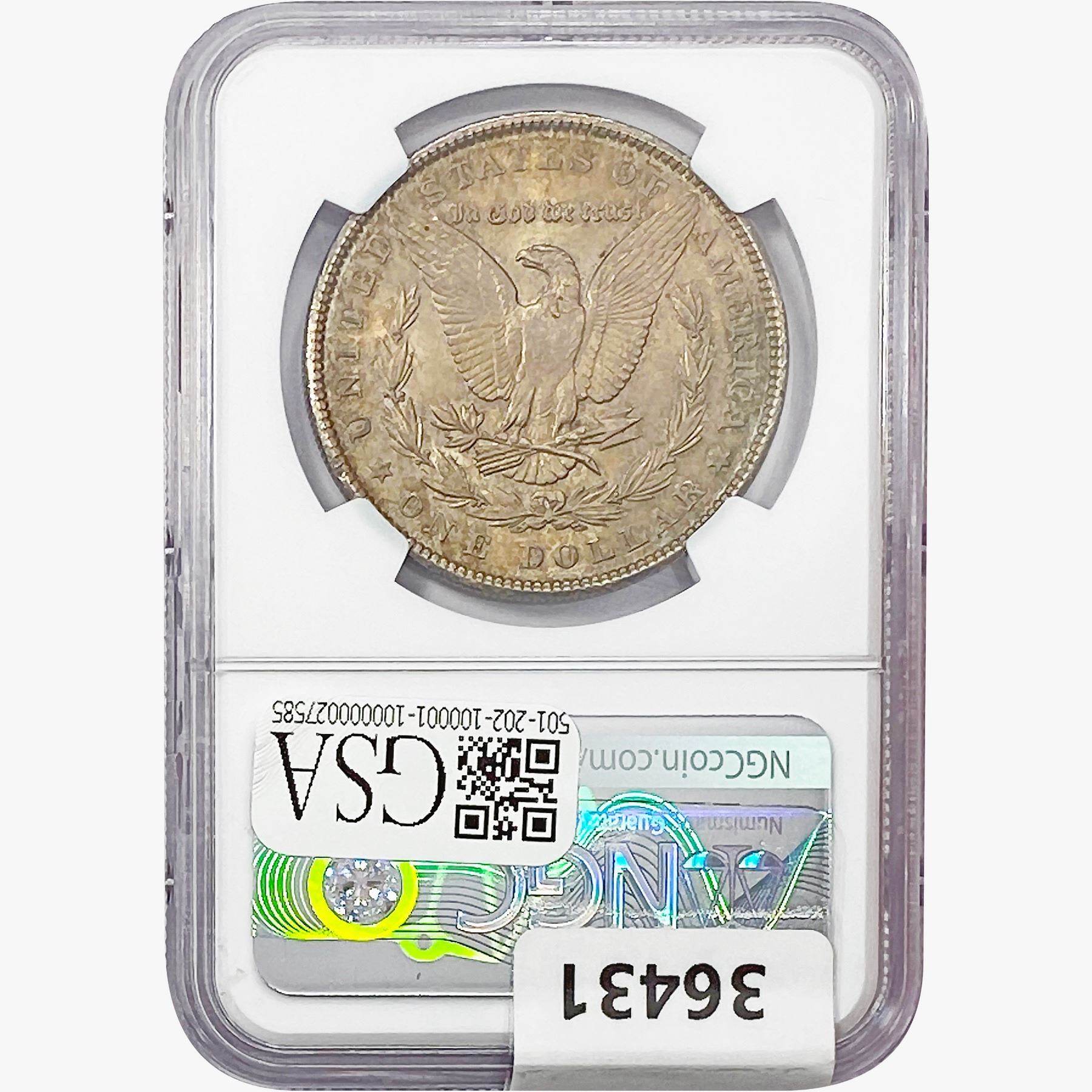 COINS AND CURRENCY LISTED IN GSA’S CATALOG AS GRADED AND ENCAPSULATED BY PCGS, NGC, ANACS, ICG, PCGS CURRENCY, PMG, PCGS BANKNOTE GRADING, CMC OR ANY OTHER THIRD-PARTY GRADING SERVICE ARE LIKEWISE SOLD “AS-IS” EXCEPT AS EXPRESSLY SET FORTH HEREIN. ALL THIRD-PARTY GRADING SERVICE GUARANTEES, INCLUDING AUTHENTICITY, ARE THE SOLE RESPONSIBILITY OF THE THIRD-PARTY GRADING SERVICE AND NOT WARRANTIES OR GUARANTEES OF GSA. BIDDERS SHOULD CONTACT THESE THIRD-PARTY GRADING SERVICES DIRECTLY WITH RESPECT TO ANY CLAIMS OR QUESTIONS THEY MAY HAVE CONCERNING THEIR GUARANTEES AND WARRANTIES. BIDDERS ACKNOWLEDGE AND AGREE THAT AUCTIONEER IS NOT BOUND BY OR LIABLE FOR ANY OPINION OR CERTIFICATION BY ANY THIRD-PARTY GRADING SERVICE. REMOVAL OF A PRODUCT FROM ITS PROTECTIVE CASING OR HOLDER OR ALTERATION OF ANY COIN HOLDER WAIVES ALL RIGHTS CONCERNING THE PRODUCT CONTAINED THEREIN.