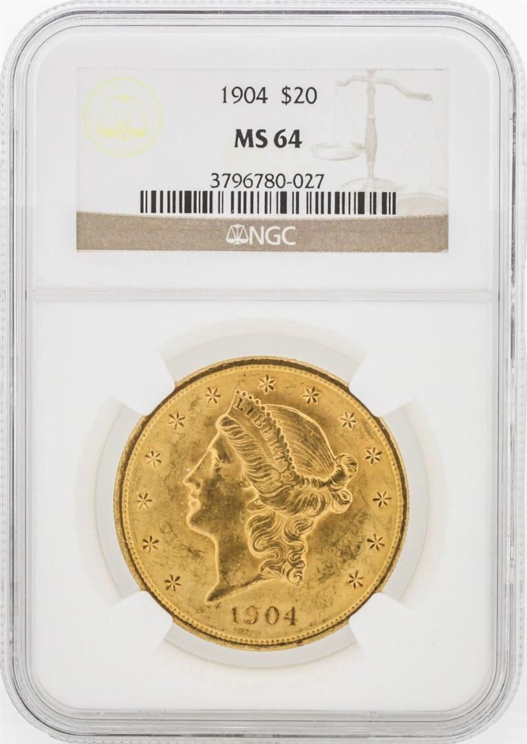 One 1904 NGC MS64 $20 Liberty Head Double Eagle Coin. NGC Certified.