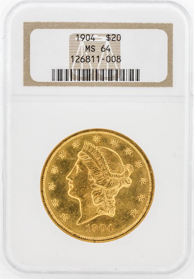 One 1904 NGC MS64 $20 Liberty Head Double Eagle Coin. NGC Certified.