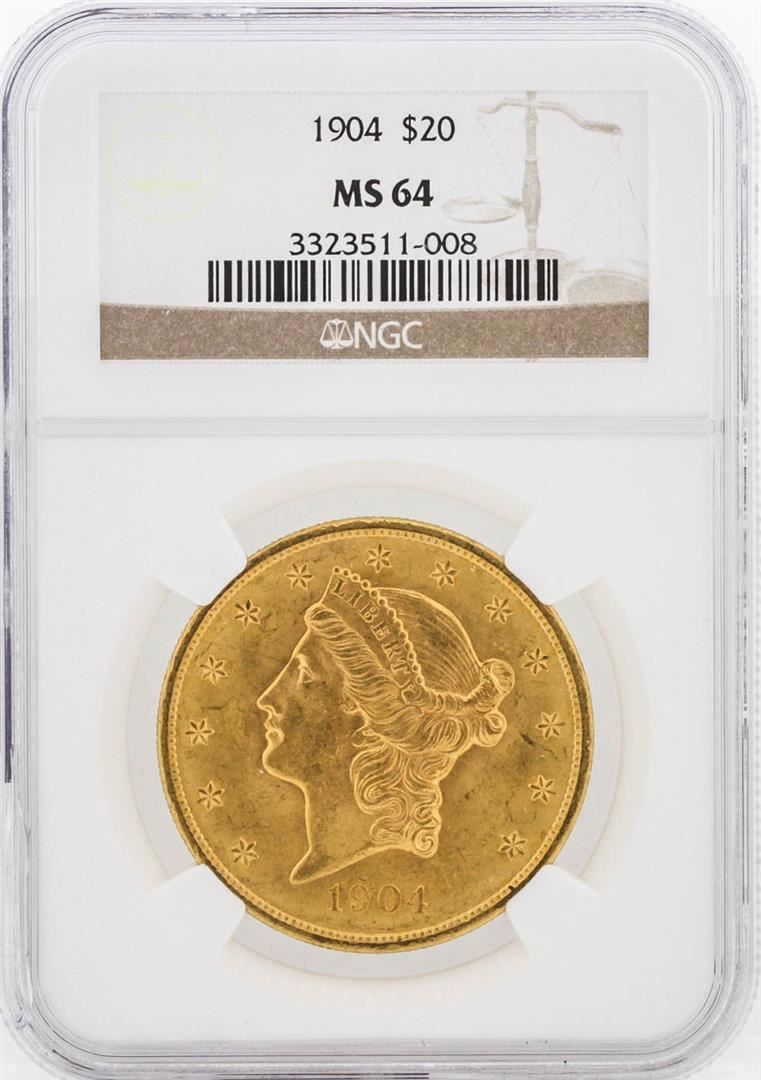 One 1904 NGC MS64 $20 Liberty Head Double Eagle Coin. NGC Certified.