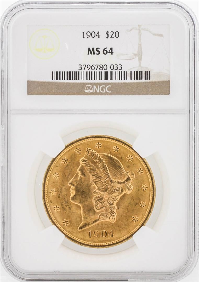 One 1904 NGC MS64 $20 Liberty Head Double Eagle Coin. NGC Certified.
