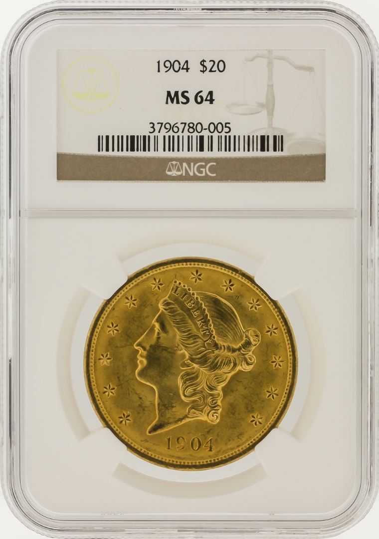 One 1904 NGC MS64 $20 Liberty Head Double Eagle Gold Coin. NGC Certified.