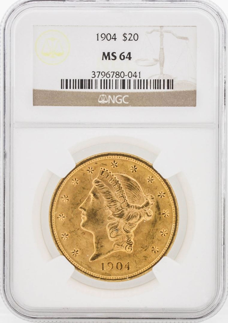 One 1904 NGC MS64 $20 Liberty Head Double Eagle Gold Coin. NGC Certified.