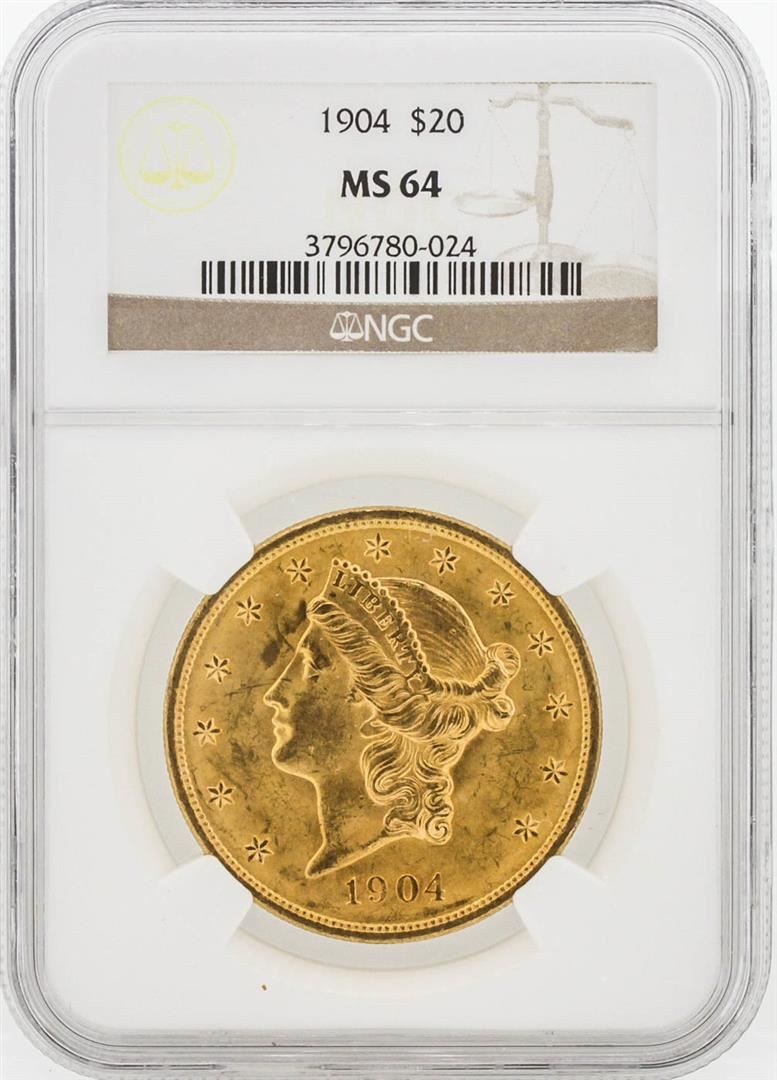One 1904 NGC MS64 $20 Liberty Head Double Eagle Coin. NGC Certified.