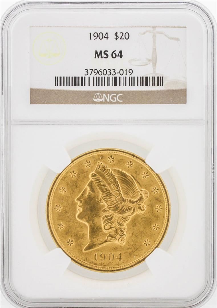 One 1904 NGC MS64 $20 Liberty Head Double Eagle Coin. NGC Certified.