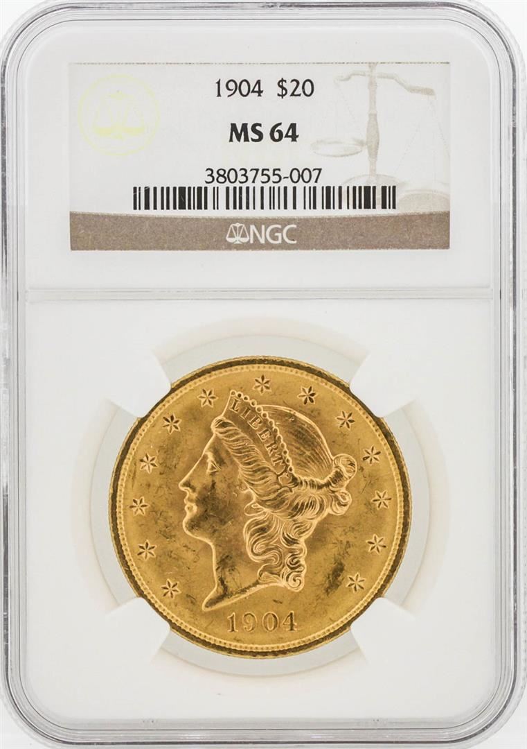 One 1904 NGC MS64 $20 Liberty Head Double Eagle Coin. NGC Certified.