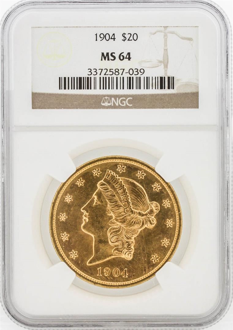 One 1904 NGC MS64 $20 Liberty Head Double Eagle Coin. NGC Certified.