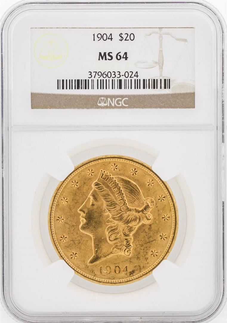 One 1904 NGC MS64 $20 Liberty Head Double Eagle Coin. NGC Certified.