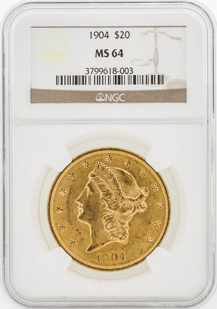 One 1904 NGC MS64 $20 Liberty Head Double Eagle Gold Coin. NGC Certified.