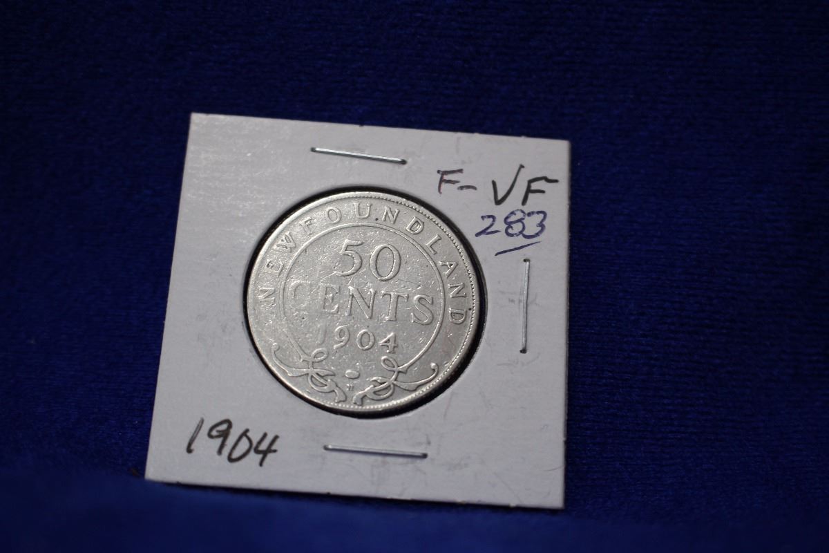 1904 Nfld. Fifty Cent Coin - .925 Silver - F to VF