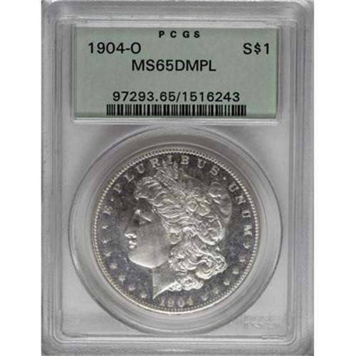 <B>1904-O $1 MS65 Deep Mirror Prooflike PCGS.</B></I> PCGS Population (105/19). NGC Census: (85/8). Numismedia Wsl. Price for NGC/PCGS coin in MS65: $640. (#97293)<BR><BR><b>Shipping:</b> Coins & Currency (<a target="_blank" href="http://www.heritageauctions.com/common/shipping.php">view shipping information</a>)
