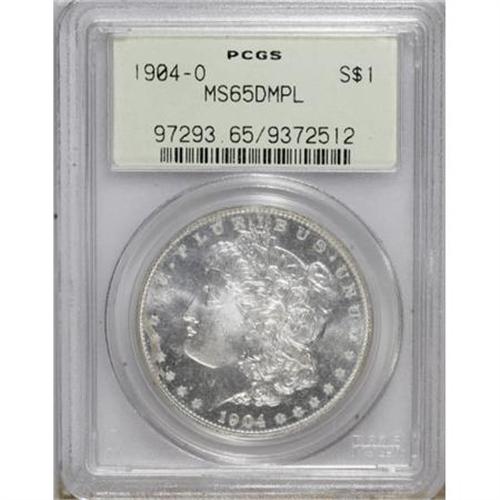 <B>1904-O $1 MS65 Deep Mirror Prooflike PCGS.</B></I> Lightly frosted devices contrast with flashy mirror fields. The obverse is unusually well preserved. Brilliant save for a blush of gray near 9 o'clock. Crisply struck, except for softness in the hair over Liberty's ear. Certified in a green label holder.<BR><BR><b>Shipping:</b> Coins & Currency (<a target="_blank" href="http://www.heritageauctions.com/common/shipping.php">view shipping information</a>)