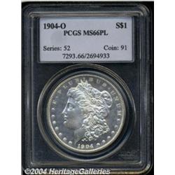 <table><tr><td><TABLE cellSpacing=0 cellPadding=0 width="100%" bgColor=#000000 border=0><TBODY> <TR><TD width="100%"><TABLE cellSpacing=1 cellPadding=3 width="100%" border=0><TBODY><TR><TD width="100%" bgColor=#79735c><FONT face=arial color=#ffffff size=3><B>Description</B> </FONT></TD></TR><TR><TD width="100%" bgColor=#ffffff><FONT face=arial size=2><B>1904-O $1 MS66 Prooflike PCGS.</B></I> A very sharp coin. Brilliant throughout with dazzling prooflike mirrors in the fields, there is only slight contrast evident with the devices. Very clean overall and problem-free. </FONT></TD></TR></TBODY></TABLE></TD></TR></TBODY></TABLE><BR><A name=PricesRealized></A><TABLE cellSpacing=0 cellPadding=0 width="100%" bgColor=#000000 border=0><TBODY><TR><TD width="100%"><TABLE cellSpacing=1 cellPadding=3 width="100%" border=0><TBODY><TR><TD width="100%" bgColor=#79735c><A name=PR><FONT face=arial color=#ffffff size=3><B>Previous Prices from Heritage Auctions</B> </FONT></A></TD></TR><TR><TD bgColor=#f6f6ed><TABLE cellSpacing=0 cellPadding=0 width="100%" border=1><TBODY><TR><TD align=middle width="33%"><B>Date</B></TD><TD align=middle width="33%"><B>Service</B></TD><TD align=middle width="33%"><B>Price</B></TD></TR><TR bgColor=whitesmoke><TD width="33%"><B>10/06/2001</B></TD><TD width="33%">NGC</TD><TD width="33%">$690.00</TD></TR><TR bgColor=whitesmoke><TD width="33%"><B>01/07/2000</B></TD><TD width="33%">PCGS</TD><TD width="33%">$431.25</TD></TR><TR bgColor=whitesmoke><TD width="33%"><B>11/01/1996</B></TD><TD width="33%">NGC</TD><TD width="33%">$462.00</TD></TR></TBODY></TABLE></TD></TR><TR><TD bgColor=#ffffff><FONT face=arial size=1 ?>PLEASE NOTE: All prices realized reflect the final hammer price PLUS the buyer's premium in auctions that charge a buyer's premium. Each item has a notation at the top of the listing indicating whether that lot included a buyer's premium. Example: A item that sells with a final hammer price of $100 and a 20% buyer's premium will display with a price realized of $120. All information listed is intended to be as accurate as possible, but errors are possible. Please use this guide carefully and inform us of any inaccuracies. </FONT></TD></TR></TBODY></TABLE></TD></TR></TBODY></TABLE><BR><TABLE cellSpacing=0 cellPadding=0 width="100%" bgColor=#000000 border=0><TBODY><TR><TD width="100%"><TABLE cellSpacing=1 cellPadding=3 width="100%" border=0><TBODY><TR><TD width="100%" bgColor=#79735c colSpan=6><FONT face=arial color=#ffffff size=3><B>Price Guide*</B> </FONT></TD></TR><TR bgColor=#f6f6ed><TD align=middle><B>Grade</B> </TD><TD align=middle><B>Coin World<BR>(Trends)</B> </TD><TD align=middle><B>Numismedia<BR>Retail</B> </TD><TD align=middle><B>Numismedia<BR>Wholesale</B> </TD><TD align=middle><B>Coin<BR>Universe</B> </TD><TD align=middle><B>Heritage<BR>Value Index</B> </TD></TR><TR bgColor=#ffffff><TD align=middle>65</TD><TD align=right>---</TD><TD align=right>$225.00</TD><TD align=right>$180.00</TD><TD align=right>$190.00</TD><TD align=right>$161.50</TD></TR><TR style="FONT-WEIGHT: bold" bgColor=#cccfdd><TD align=middle>66</TD><TD align=right>---</TD><TD align=right>$780.00</TD><TD align=right>$625.00</TD><TD align=right>$750.00</TD><TD align=right>$504.00</TD></TR><TR bgColor=#ffffff><TD align=middle>67</TD><TD align=right>---</TD><TD align=right>---</TD><TD align=right>---</TD><TD align=right>---</TD><TD align=right>---</TD></TR><TR bgColor=#ffffff><TD colSpan=6><FONT size=1>*All information listed is intended to be as accurate as possible, but errors are possible. No item may be returned or refused based on this information which is provided as a service to our customers. You should contact each pricing source directly to determine the accuracy of this information. </FONT></TD></TR></TBODY></TABLE></TD></TR></TBODY></TABLE><BR><TABLE cellSpacing=0 cellPadding=0 width="100%" bgColor=#000000 border=0><TBODY><TR><TD width="100%"><TABLE cellSpacing=1 cellPadding=3 width="100%" border=0><TBODY><TR><TD width="100%" bgColor=#79735c><FONT face=arial color=#ffffff size=3><B>Population Guide</B> </FONT></TD></TR><TR bgColor=#ffffff><TD align=middle><!-- Begin Output of Population Grid--><TABLE cellSpacing=0 cellPadding=0 width="100%" border=0><TBODY><TR><TD vAlign=center><TABLE cellSpacing=0 width="100%" border=1 cellsadding="3"><TBODY><TR><TD vAlign=center><TABLE cellSpacing=0 cellPadding=3 width="100%" border=1><TBODY><TR><TD vAlign=center align=middle bgColor=#f0f1e8 colSpan=2 <CENTER><FONT face=Arial size=2><B>PCGS Pop </B></FONT><CENTER></CENTER></TD><TD vAlign=center align=middle bgColor=#f0f1e8 colSpan=2><CENTER><FONT face=Arial size=2><B>NGC Pop</B></CENTER></FONT></TD></TR><TR><TD vAlign=center><FONT face=Arial size=2>(66)</FONT> </TD><TD vAlign=center align=right><FONT face=Arial size=2>54</FONT> </TD><TD vAlign=center><FONT face=Arial size=2>(66)</FONT> </TD><TD vAlign=center align=right><FONT face=Arial size=2>28</FONT> </TD></TR><TR><TD vAlign=center><FONT face=Arial size=2>(>66)</FONT> </TD><TD vAlign=center align=right><FONT face=Arial size=2>0</FONT> </TD><TD vAlign=center><FONT face=Arial size=2>(>66)</FONT> </TD><TD vAlign=center align=right><FONT face=Arial size=2>0</FONT> </TD></TR></TBODY></TABLE></TD></TR></TBODY></TABLE></TD></TR></TBODY></TABLE><!-- End Output of Population Grid--></TD></TR></TBODY></TABLE></TD></TR></TBODY></TABLE><BR><TABLE cellSpacing=0 cellPadding=0 width="100%" bgColor=#000000 border=0><TBODY><TR> <font color='#000000'><span style='background-color: #FFFFFF'><td bgcolor='#FFFFFE'> Important notice: Heritage usually auctions material at the rate of 200-250 lots per hour. On some occasions eBay Live bid software or the Internet may not be able to keep up with the pace of the auction. We recommend placing a realistic absentee bid now as insurance to avoid disappointment. Occasionally the auctioneer may eliminate or reject an eBay Live bid, and the auctioneer may also reopen a lot after the close of the eBay live bidding (usually because w