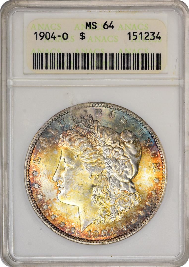 1904-O $1 Morgan Silver Dollar Coin ANACS MS64 Amazing Toning