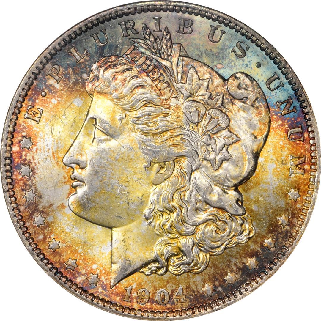 One 1904-O $1 Morgan Silver Dollar Coin ANACS MS64 Amazing Toning. ANACS Certified.