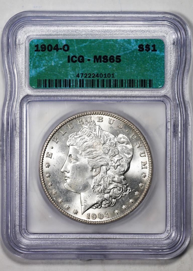 One 1904-O $1 Morgan Silver Dollar Coin ICG MS65. ICG Certified.