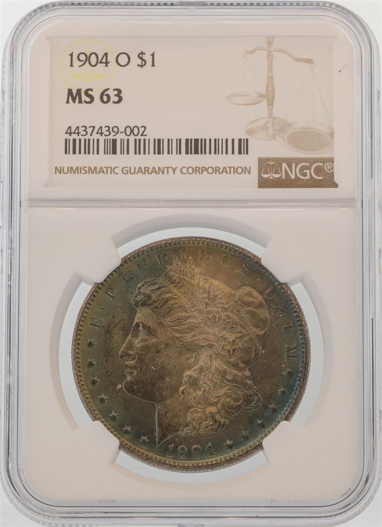 One 1904-O $1 Morgan Silver Dollar Coin NGC MS63 AMAZING TONING. NGC Certified.