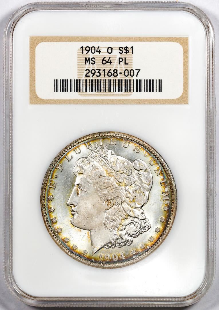 One 1904-O $1 Morgan Silver Dollar Coin NGC MS64PL Amazing Toning Old Fatty Holder. NGC Certified.