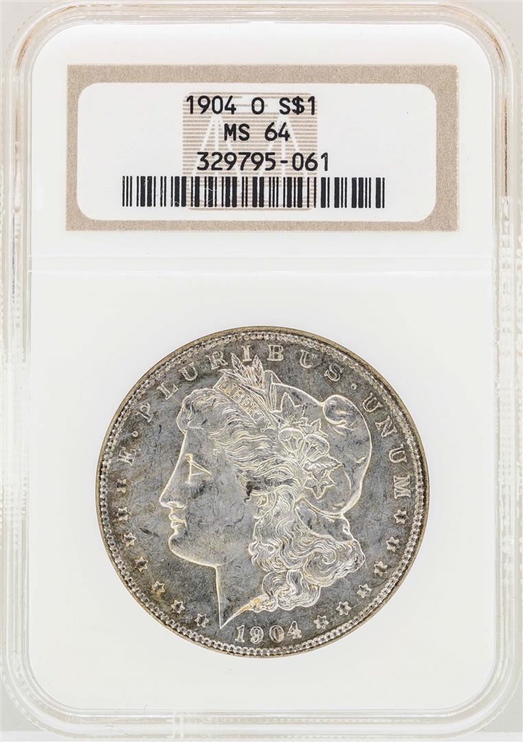 One 1904-O $1 Morgan Silver Dollar Coin NGC MS64. NGC Certified.