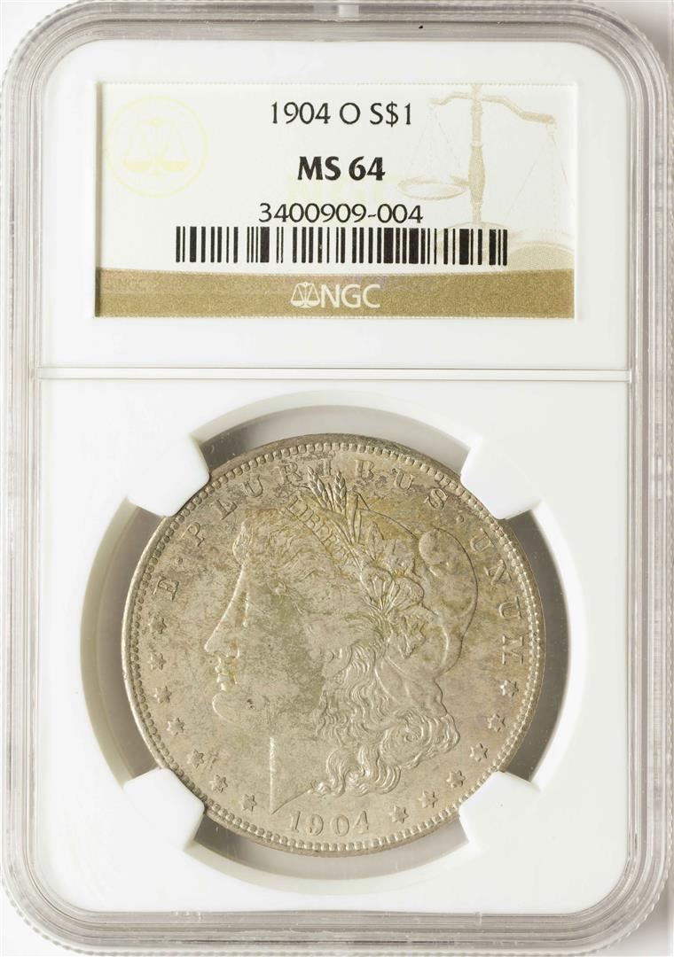One 1904-O $1 Morgan Silver Dollar Coin NGC MS64. NGC Certified.