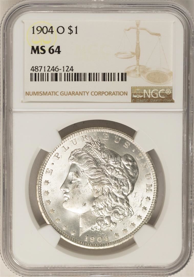 One 1904-O $1 Morgan Silver Dollar Coin NGC MS64. NGC Certified.