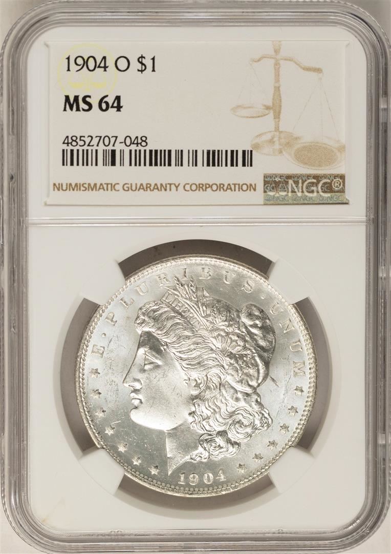 One 1904-O $1 Morgan Silver Dollar Coin NGC MS64. NGC Certified.