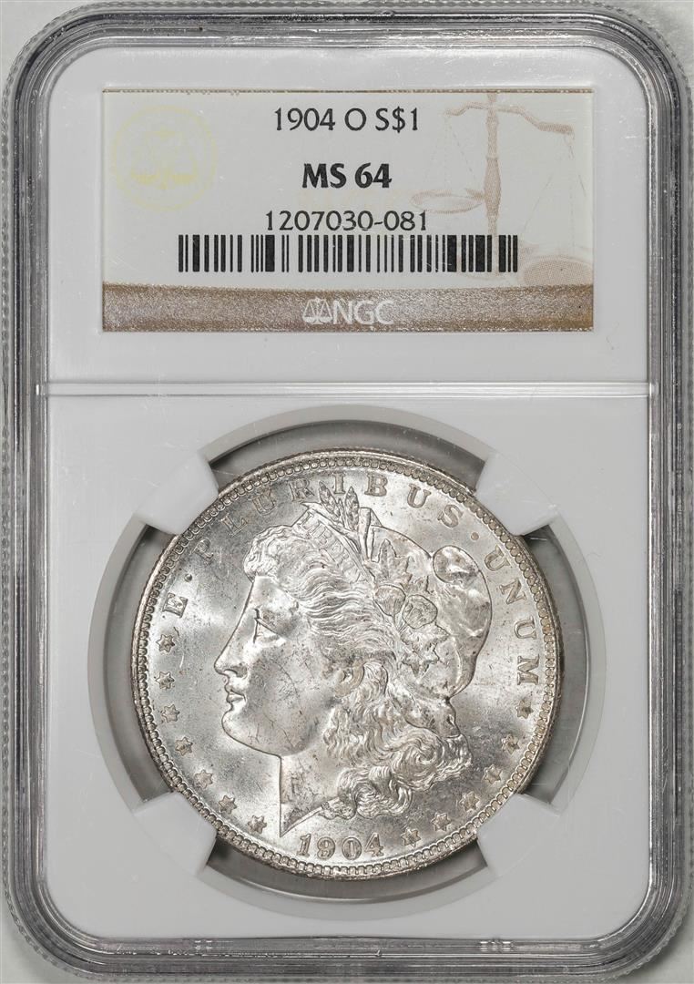 One 1904-O $1 Morgan Silver Dollar Coin NGC MS64. NGC Certified.