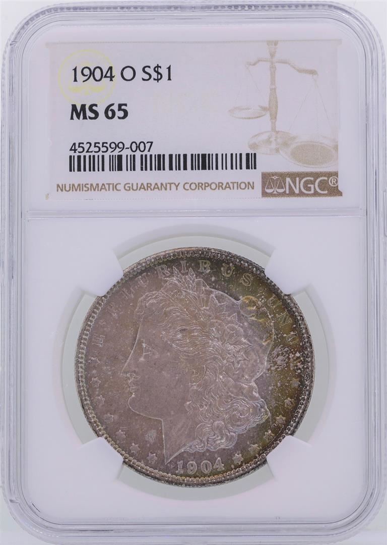 One 1904-O $1 Morgan Silver Dollar Coin NGC MS65 Amazing Toning. NGC Certified.
