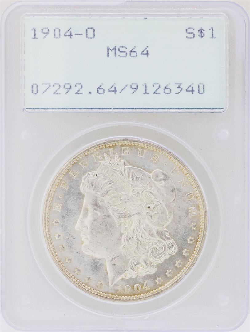 One 1904-O $1 Morgan Silver Dollar Coin PCGS MS64 Rattler. PCGS Graded.