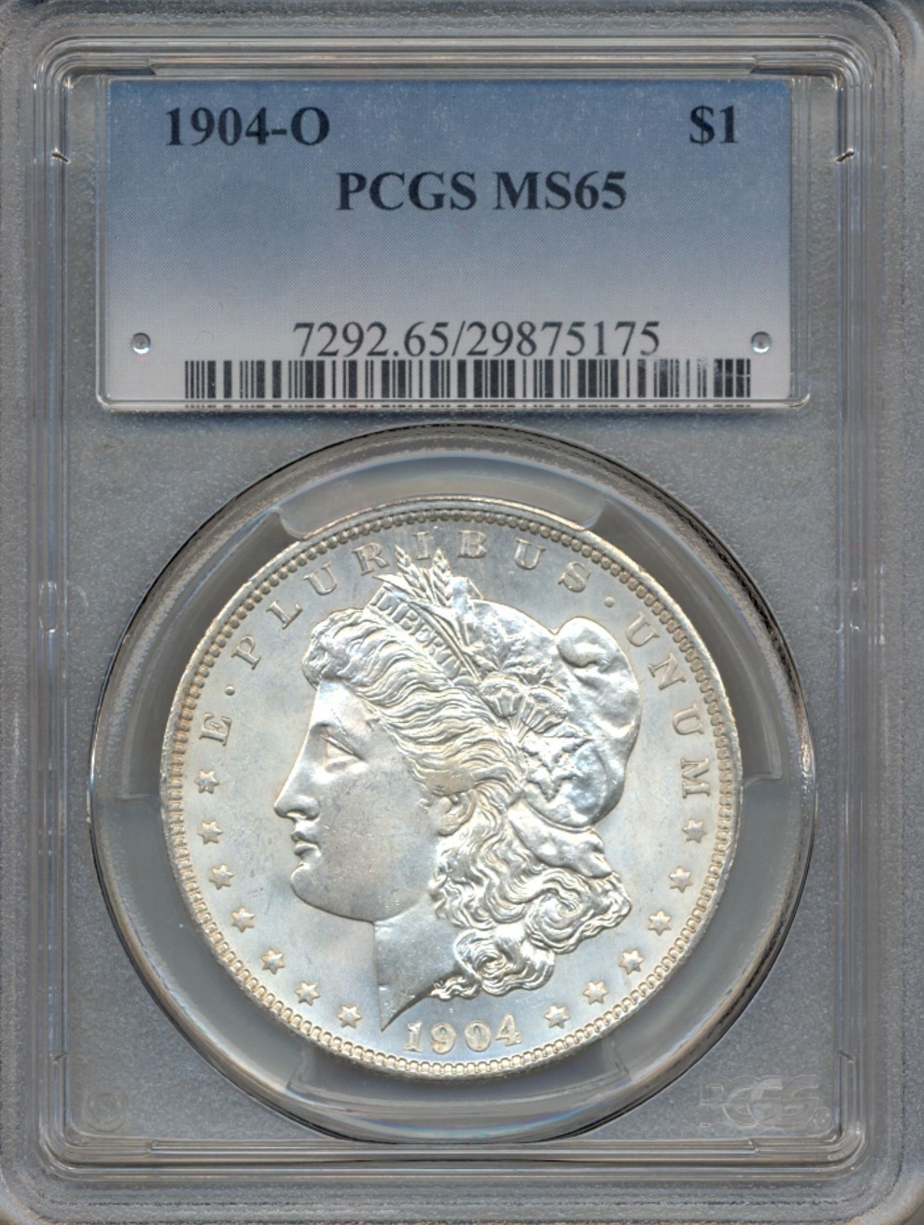 One 1904-O $1 Morgan Silver Dollar Coin PCGS MS65.