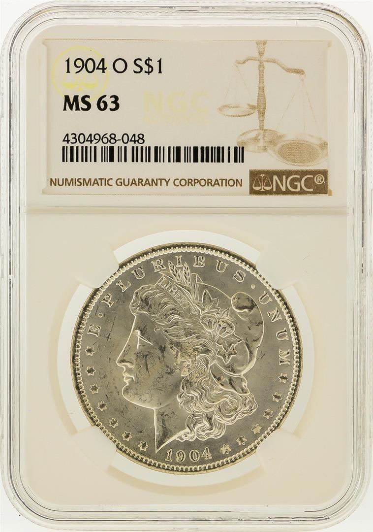 One 1904-O $1 Morgan Silver Dollar NGC Graded MS63. NGC Certified.