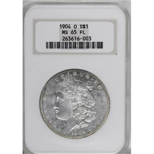 <B>1904-O $1 MS65 Prooflike NGC.</B></I> NGC Census: (370/47). PCGS Population (389/56). Numismedia Wsl. Price for NGC/PCGS coin in MS65: $200. (#7293)<BR><BR><B>Coin Engraver:</B> George T. Morgan<BR><BR><b>Shipping:</b> Coins & Currency (<a target="_blank" href="http://www.heritageauctions.com/common/shipping.php">view shipping information</a>)