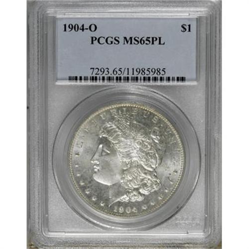 <B>1904-O $1 MS65 Prooflike PCGS.</B></I> . PCGS Population (394/56). NGC Census: (370/48). Numismedia Wsl. Price for NGC/PCGS coin in MS65: $215. (#7293)<BR><BR><B>Coin Engraver:</B> George T. Morgan<BR><BR><b>Shipping:</b> Coins & Currency (<a target="_blank" href="http://www.heritageauctions.com/common/shipping.php">view shipping information</a>)