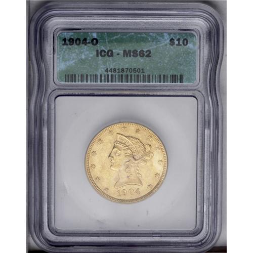1904-O $10 MS62 ICG. Somewhat irregularly struck but s 1904-O[$10] MS62 ICG.