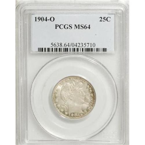 <B>1904-O 25C MS64 PCGS.</B></I> Wisps of red-gold and sky-blue patina gravitate to the margins of this well struck O-mint. A few minute obverse marks are not detracting.<BR><BR><B>Coin Engraver:</B> Charles E. Barber<BR><BR><b>Shipping:</b> Coins & Currency (<a target="_blank" href="http://www.heritageauctions.com/common/shipping.php">view shipping information</a>)