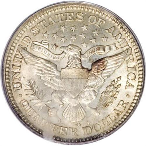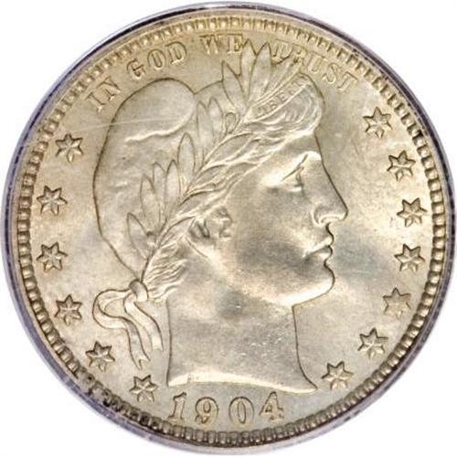 <B>1904-O 25C MS65 PCGS.</B></I> This is an issue that has always appealed to collectors, since problem-free specimens are at a premium. Golden-gray highlights predominate on both sides of this example, with a small patch of russet toning appearing on the eagle's right (facing) wing. Interestingly, although the strike is nearly full on the usually weak spots--the hair above the forehead, the eagle's claw, the right shield corner--only star 11 on the obverse is mushy. A filled die? Nonetheless a nice and attractive Gem.<BR><I>From The Southwest Collection.</B></I><BR><BR><B>Coin Engraver:</B> Charles E. Barber<BR><BR><b>Shipping:</b> Coins & Currency (<a target="_blank" href="http://www.heritageauctions.com/common/shipping.php">view shipping information</a>)