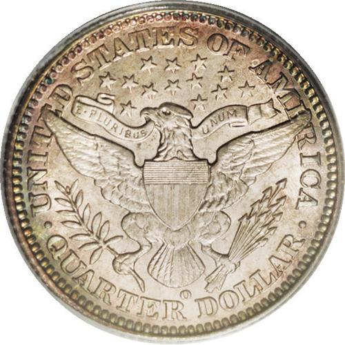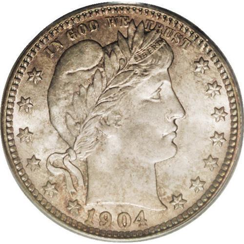 <B>1904-O 25C MS66 PCGS.</B></I> Splashes of almond-brown and gunmetal-blue grace the centers, while forest-green toning clings to the reverse periphery. This lustrous and attractively preserved Premium Gem is encapsulated in a green label holder. The 1904-O is much more scarce in Mint State than implied by its mintage of nearly 2.5 million pieces. Population: 11 in 66, 3 finer (9/06).<BR><BR><b>Shipping:</b> Coin/Currency (<a target="_blank" href="http://www.heritageauctions.com/common/shipping.php">view shipping information</a>)