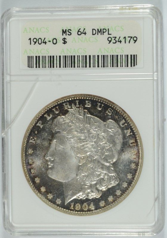 1904-O MORGAN SILVER DOLLAR, ANACS MS-64 DMPL crack in holder