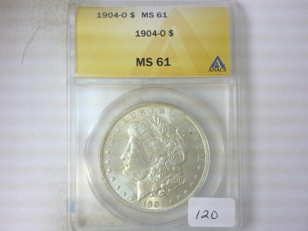 1904-O MORGAN SILVER DOLLAR ANACS MS61