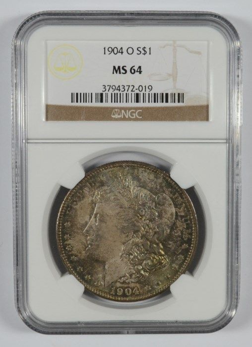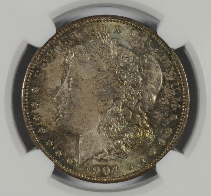 1904-O MORGAN SILVER DOLLAR, NGC MS-64 SUPER RAINBOW COLORS! LOOK!
