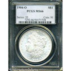 <B>1904-O<img border='0' src='http://www.heritagecoins.com/images/star.gif' width=10 height=10>$1 MS66 PCGS.</B></I> Silvery-gray surfaces display strong luster, and are virtually devoid of any mentionable marks. Lot:10628