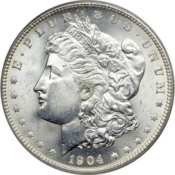 1904-O Morgan Dollar. PCGS graded MS-65. CAC Approved. Housed in an Old Green Holder. A nice white coin (PCGS # 7292) .