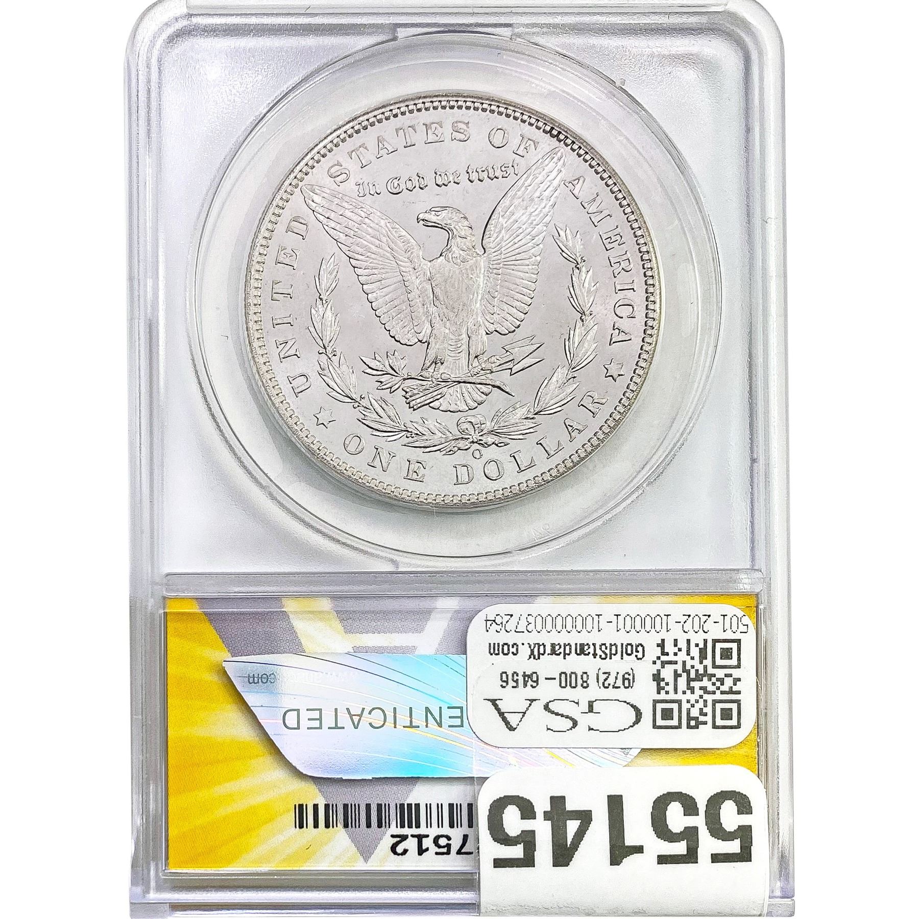 e. Coins sold referencing a third-party grading service are sold “AS IS” without any express or implied warranty, except for a guarantee by GSA that they are genuine. Removal or alteration of the holder, voids all of Bidder’s claims concerning that Product. Certain warranties may be available from the grading services and Bidders are referred to them for further details: Numismatic Guaranty Corporation (NGC), PO Box 4776, Sarasota, FL 34230, www.ngccoin.com/services/writtenguarantee.asp; Professional Coin Grading Services (PCGS), PO Box 9458, Newport Beach, CA 92658, www.pcgs.com/guarantee.html; ANACS, 6555 S. Kenton St., Ste. 303, Englewood, CO 80111; and Independent Coin Grading Co. (ICG), 7901 East Bellview, Ave., Suite 50, Englewood, CO 80111.