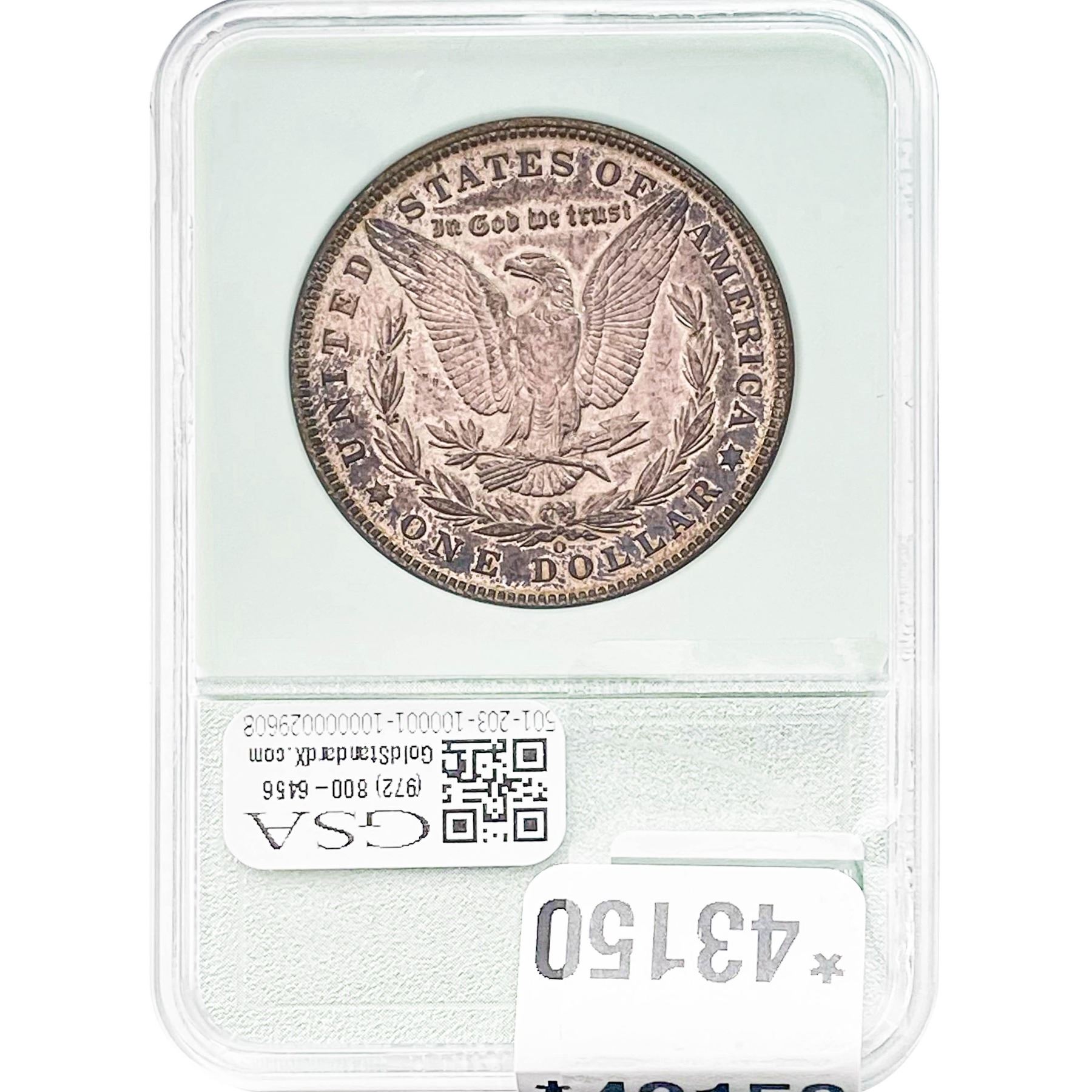 l. All non-certified coins and currency are guaranteed genuine, but are not guaranteed as to grade, since grading is a matter of opinion, an art and not a science, and therefore the description rendered by GSA or any third-party grading service may not agree with the opinion of others (including trained experts), and the same expert may not grade the same item with the same grade at two different times. GSA may, but is not obligated to, express an opinion as to non-certified numismatic items, in GSA’s opinion, or by its employees’ experience and the current interpretation of the American Numismatic Association’s standards as of the date the catalog was prepared. There is no guarantee or warranty expressed or implied that the grading opinions utilized by GSA, if any, will meet the standards of any grading service at any time in the future.