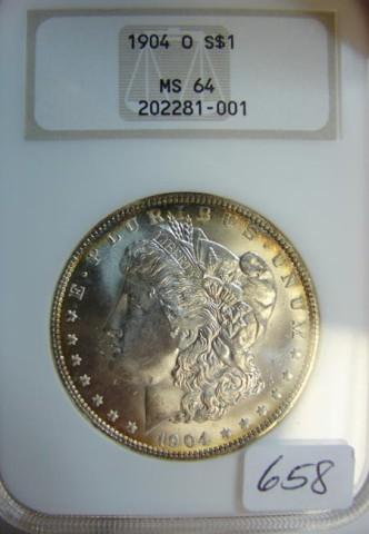 1904-O Morgan Silver Dollar NGC MS 64 Gold Toning